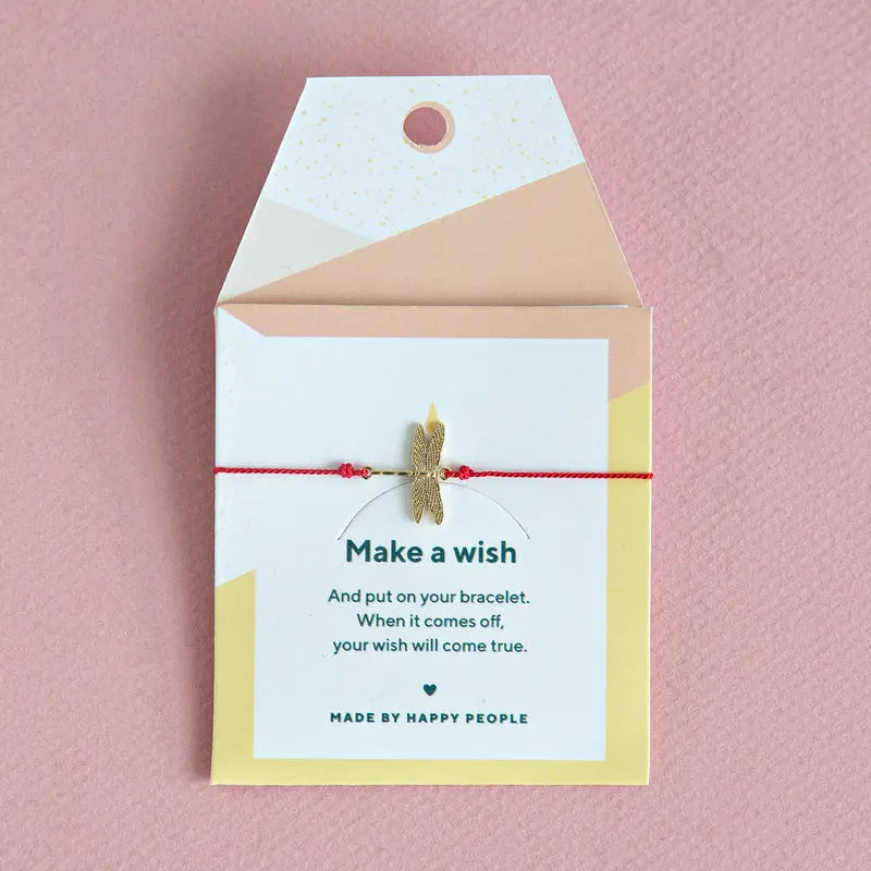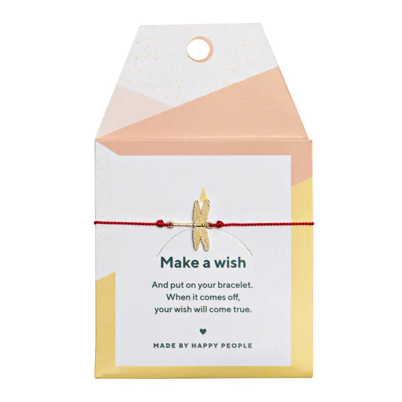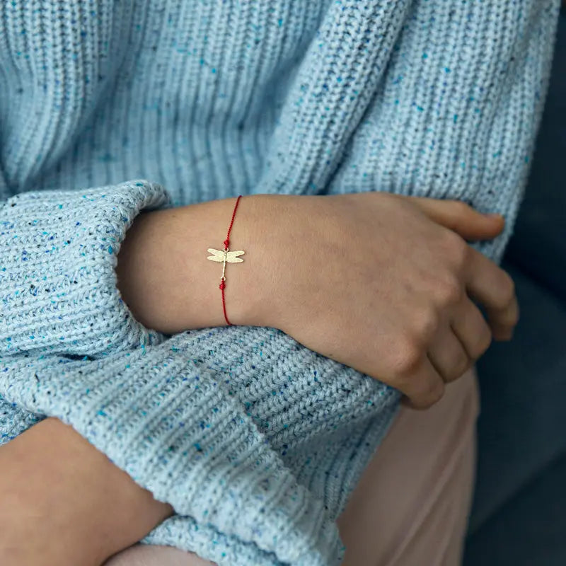 Dragonflies are such magical creatures. Bring some magic into your life with this Dragonfly Silk Bracelet. Make a wish and put on this bracelet. When it comes off, your wish will come true. This bracelet comes with our gorgeous packaging of the season. Brass base with gold plating 100% silk cord Size: Adjustable with oval shaped lock 15 mm x 10 mm shaped brass charm with white agate resin setting Lead, nickel and cadmium free