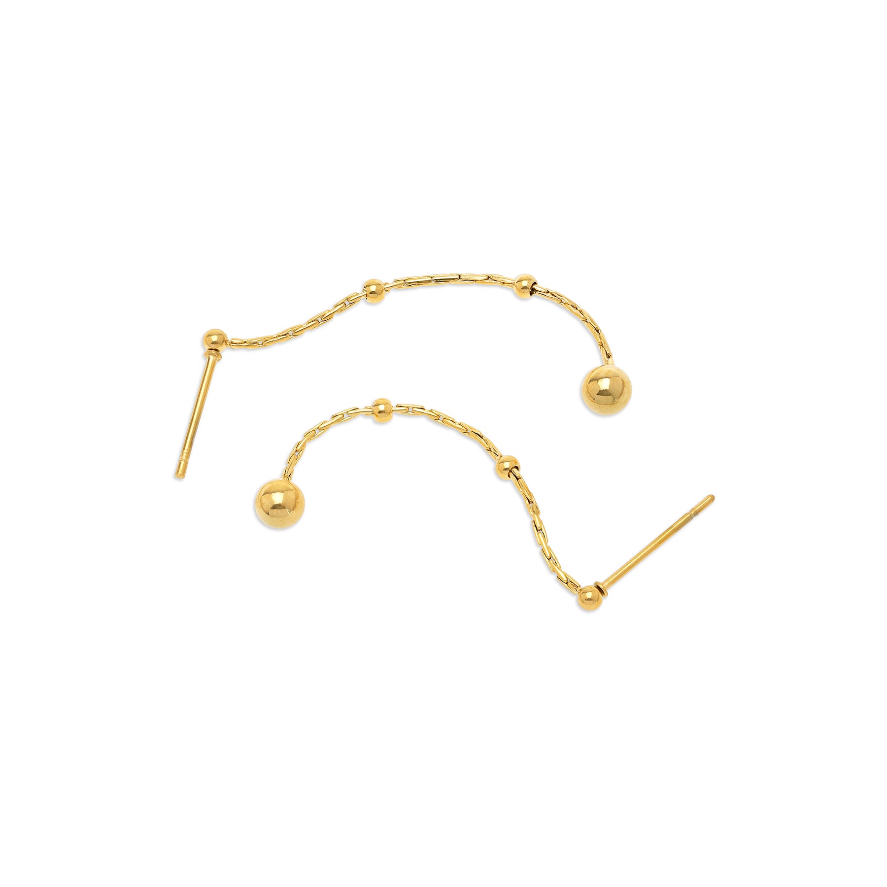 Modern minimalism with this ball chain earrings. These delicate stainless steel studs feature a sleek chain with delicate golden steel pearls, is water-resistant, and tarnish-free for understated style. Available in silver & gold to fit your style and needs.