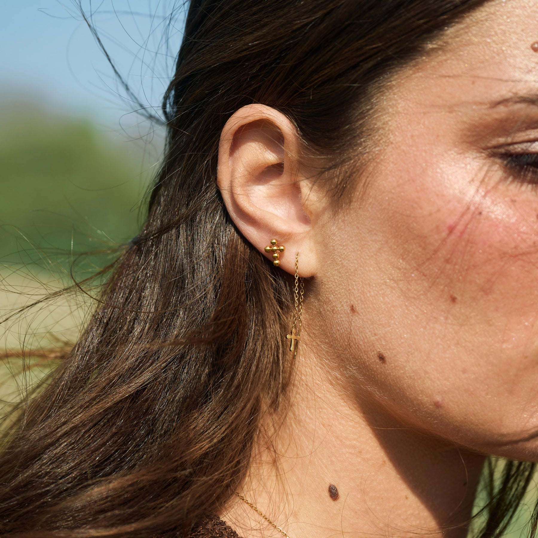 Tia - Bubble Mini Cross Earrings Stainless Steel