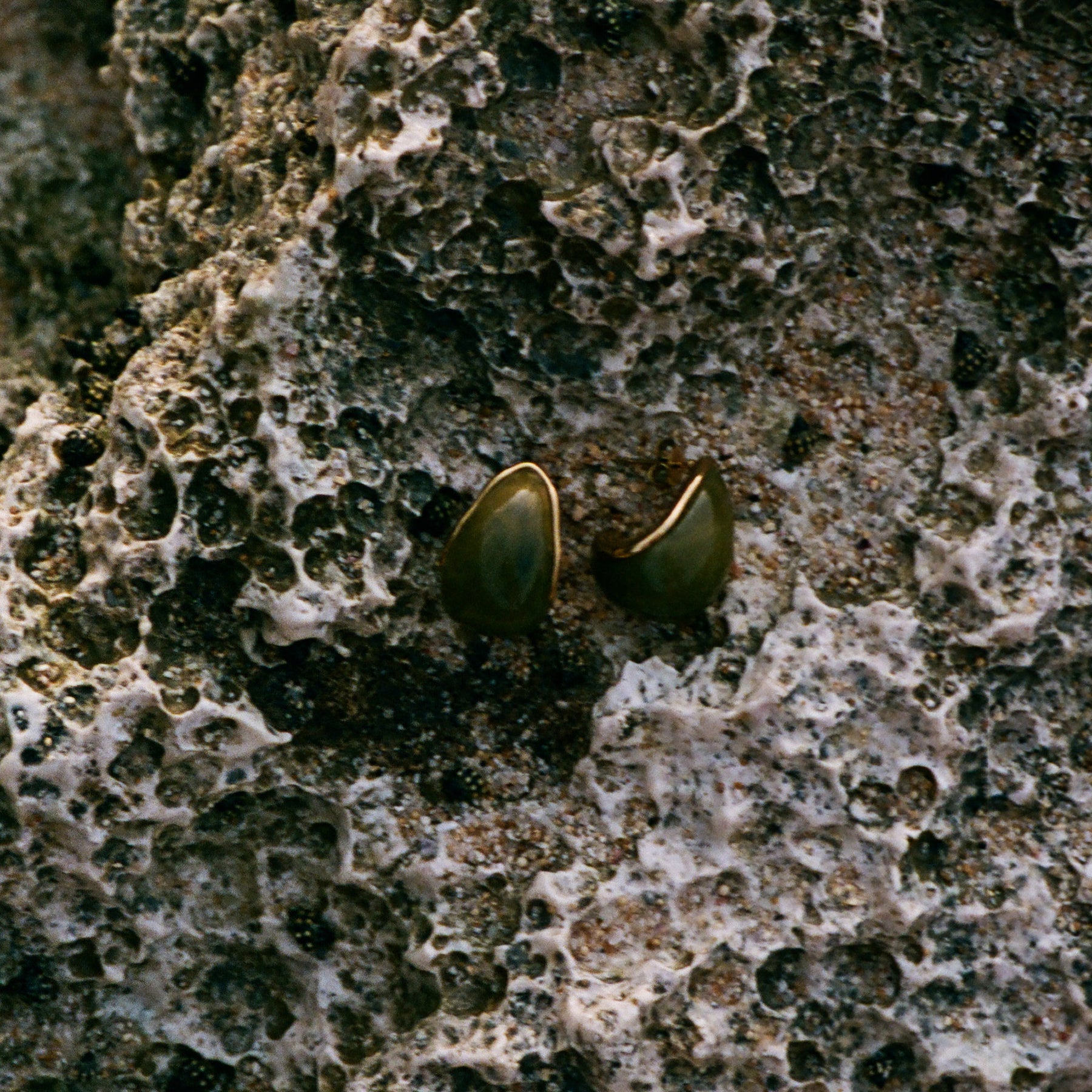 Make it pop. Carin studs mix green with golden stainless steel for a fun, fresh twist on your usual earrings. Lightweight, bold, and ready to stand out.