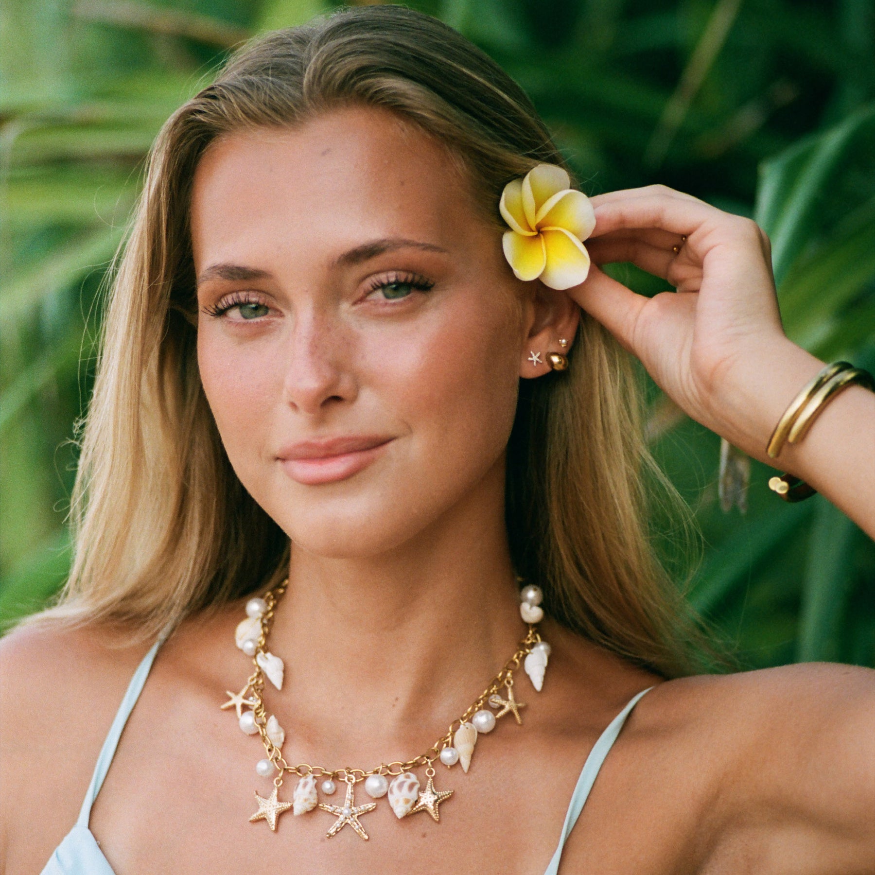 Your new everyday fave! The Solana Mini Starfish Stud Earrings are the perfect mix of minimal and magical. Tiny and lightweight, these studs add a subtle ocean inspired touch to any outfit. Perfect for stacking or wearing solo.